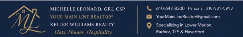By checking this box, I consent to receive marketing messages from Michelle Leonard, Your Main Line Realtor© |Keller Williams Realty about my Seller Readiness Checklist. at the phone number provided. Message frequency varies. Message & data rates may apply. Reply HELP for assistance, reply STOP to opt out.